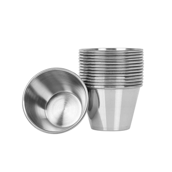 ถ้วยซอสปรุงรสสเตนเลสทรงกลมขนาดเล็กสำหรับจุ่มจานโลหะและควบคุมส่วนแพ็ค100ชิ้น