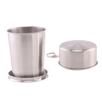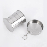 ถ้วยสแตนเลสขนาดเล็กพกพาสำหรับกลางแจ้งพร้อมพวงกุญแจถอดได้ถ้วยสำหรับเดินป่าตั้งแคมป์